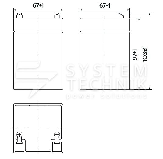 - Срок хранения без подзаряда: 6 мес. при 25°C;