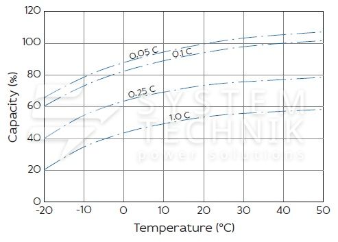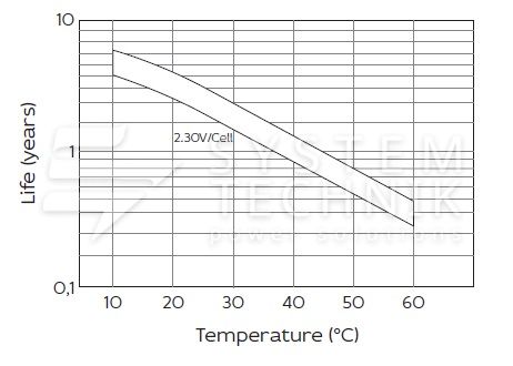 - Срок хранения без подзаряда: 6 мес. при 25°C;