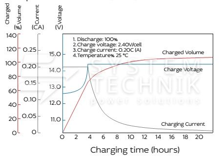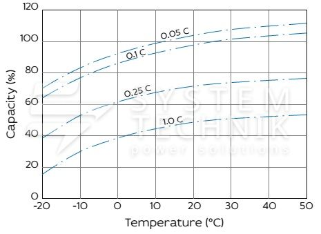 - Срок хранения без подзаряда: 6 мес. при 25°C;