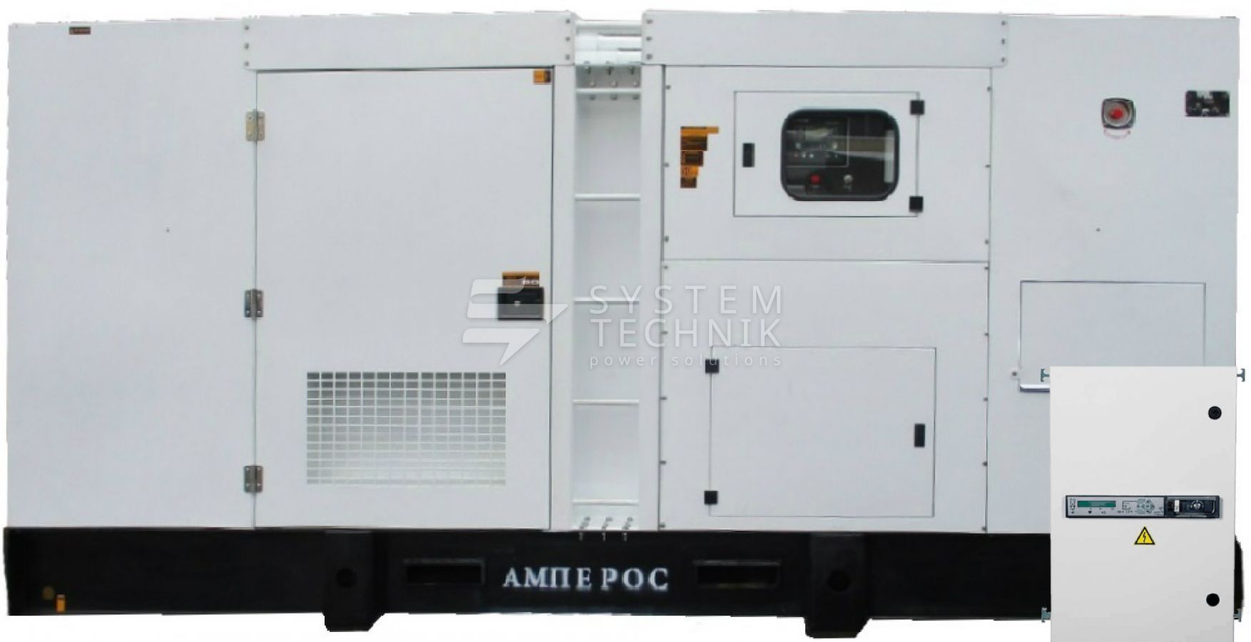 - АМПЕРОС АД-640-Т400 в кожухе с АВР