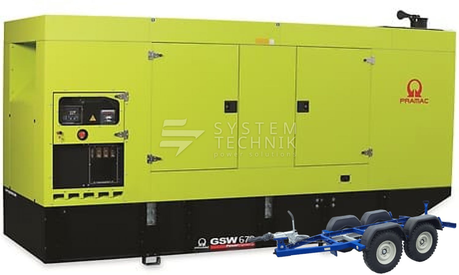 - Дизельный генератор Pramac GSW 670 P 400V В кожухе на прицепе